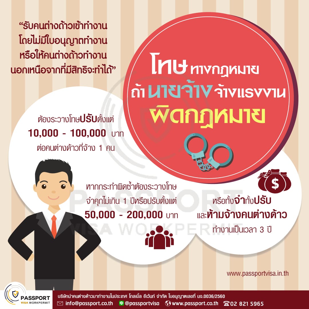 ต้องระวางโทษปรับตั้งแต่ 10,000 – 100,000 บาท ต่อคนงานต่างด้าวที่จ้าง 1 คน