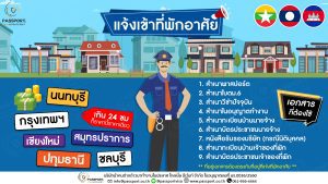 การแจ้งที่พักอาศัยของคนต่างด้าว เมื่อคนต่างด้าวเดินทางเข้ามาที่ประเทศไทย 1. เมื่อคนต่างด้าวเดินทางเข้าที่พักครั้งแรก 2. เมื่อคนต่างด้าวมีการย้ายที่พักมาที่พักใหม่ 3. เมื่อคนต่างด้าวมีการย้ายที่พักมาใหม่ อีกครั้ง