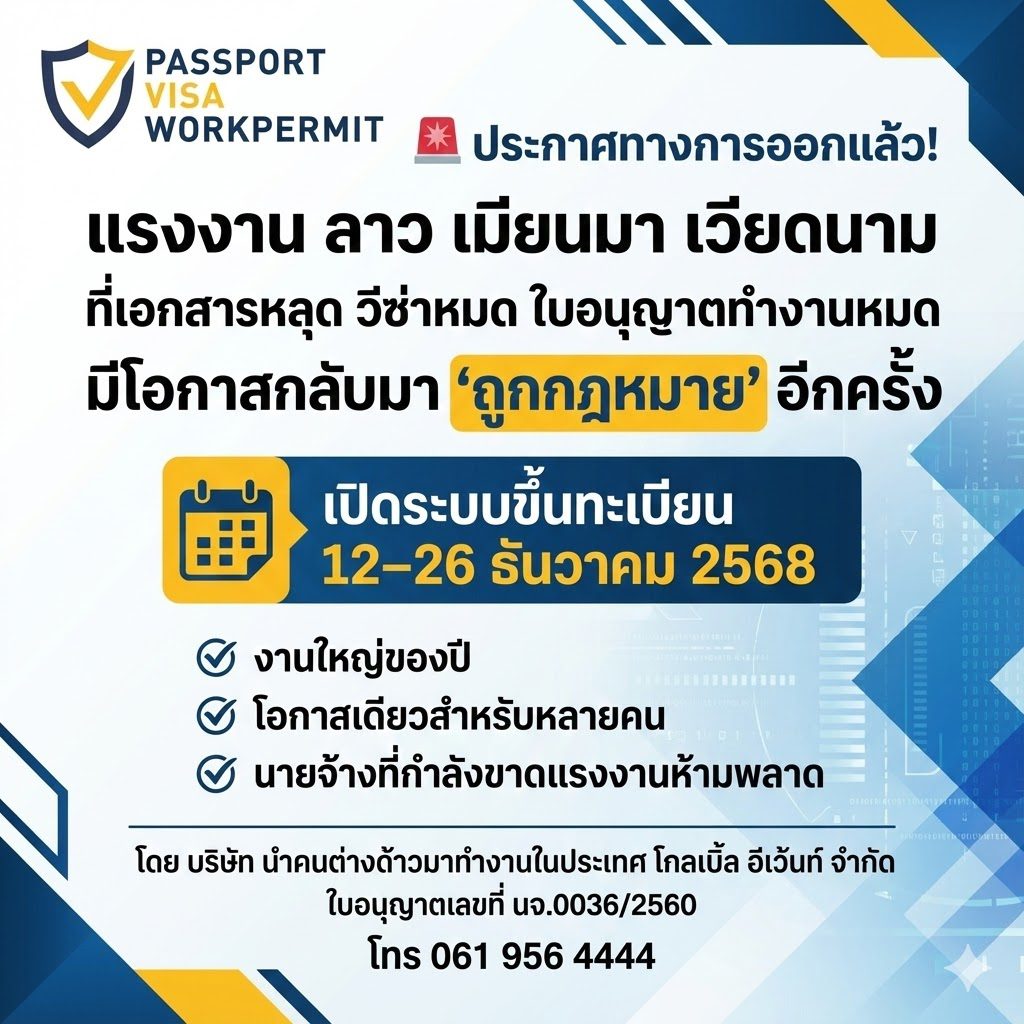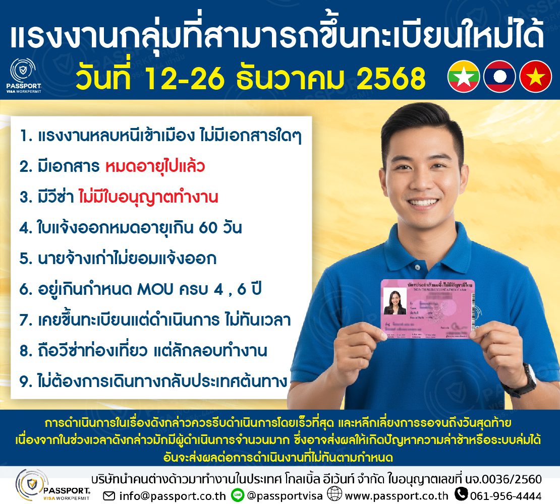 มติ ครม. วันที่ 11 พฤศจิกายน 2568 อนุมัติ การเปิดขึ้นทะเบียนแรงงานต่างด้าว 2568