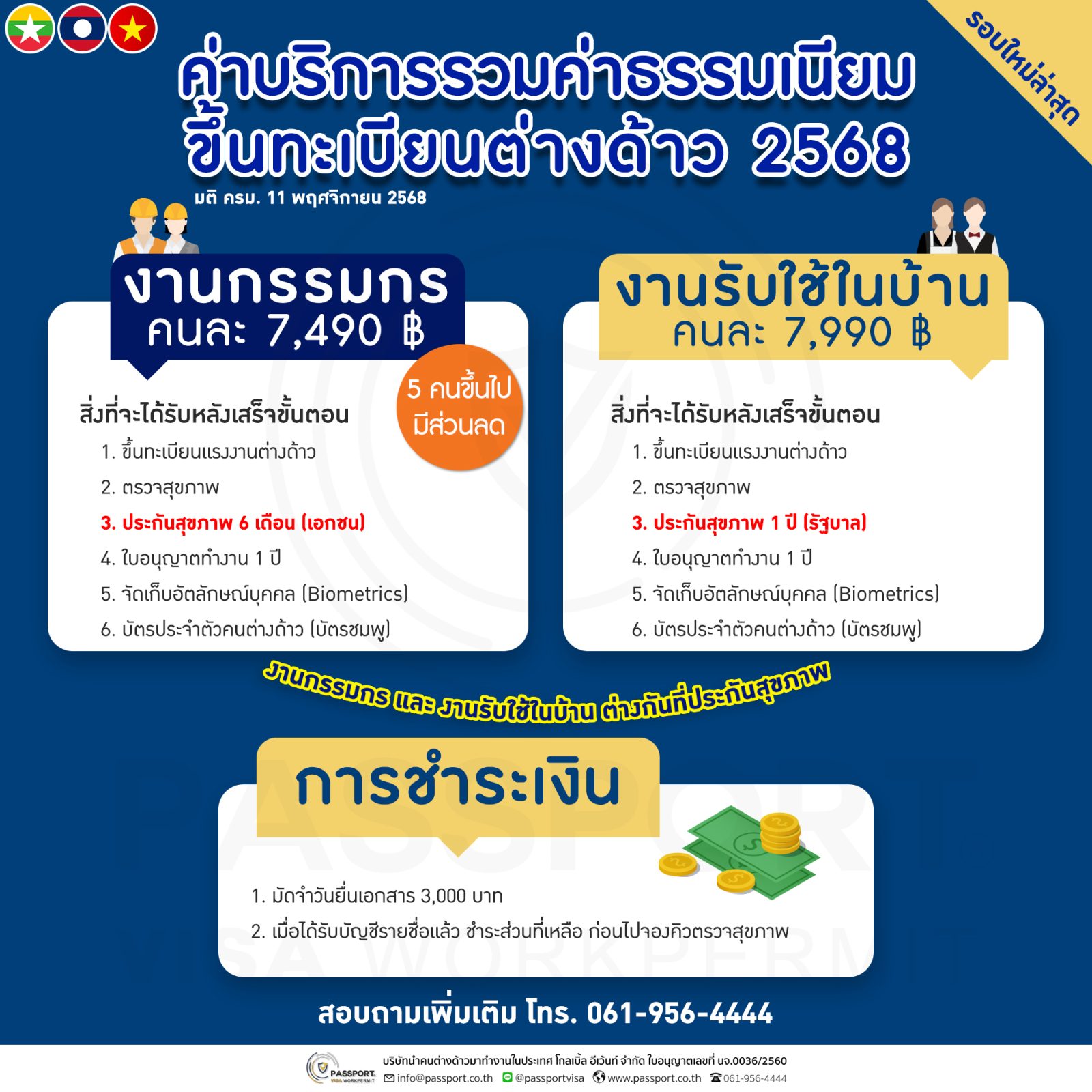 ค่าบริการรวมค่าธรรมเนียม ขึ้นทะเบียนแรงงานต่างด้าว 2568 |