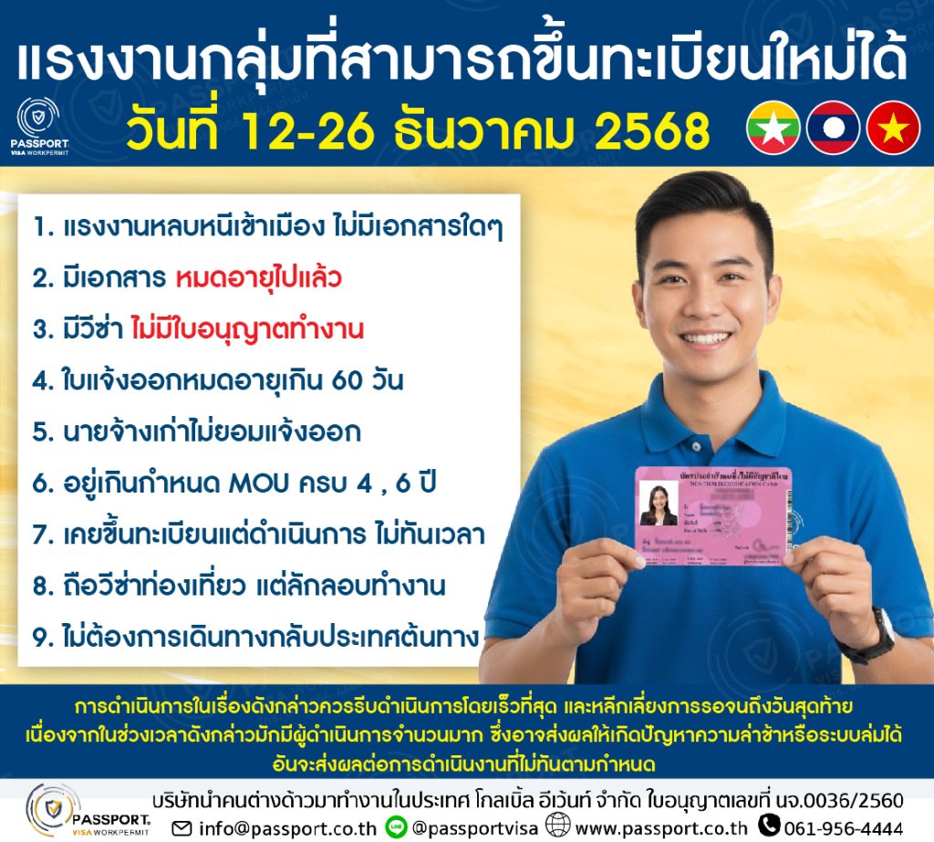 กลุ่มแรงงานต่างด้าวที่จะขึ้นทะเบียนแรงงานต่างด้าว 2568 ได้