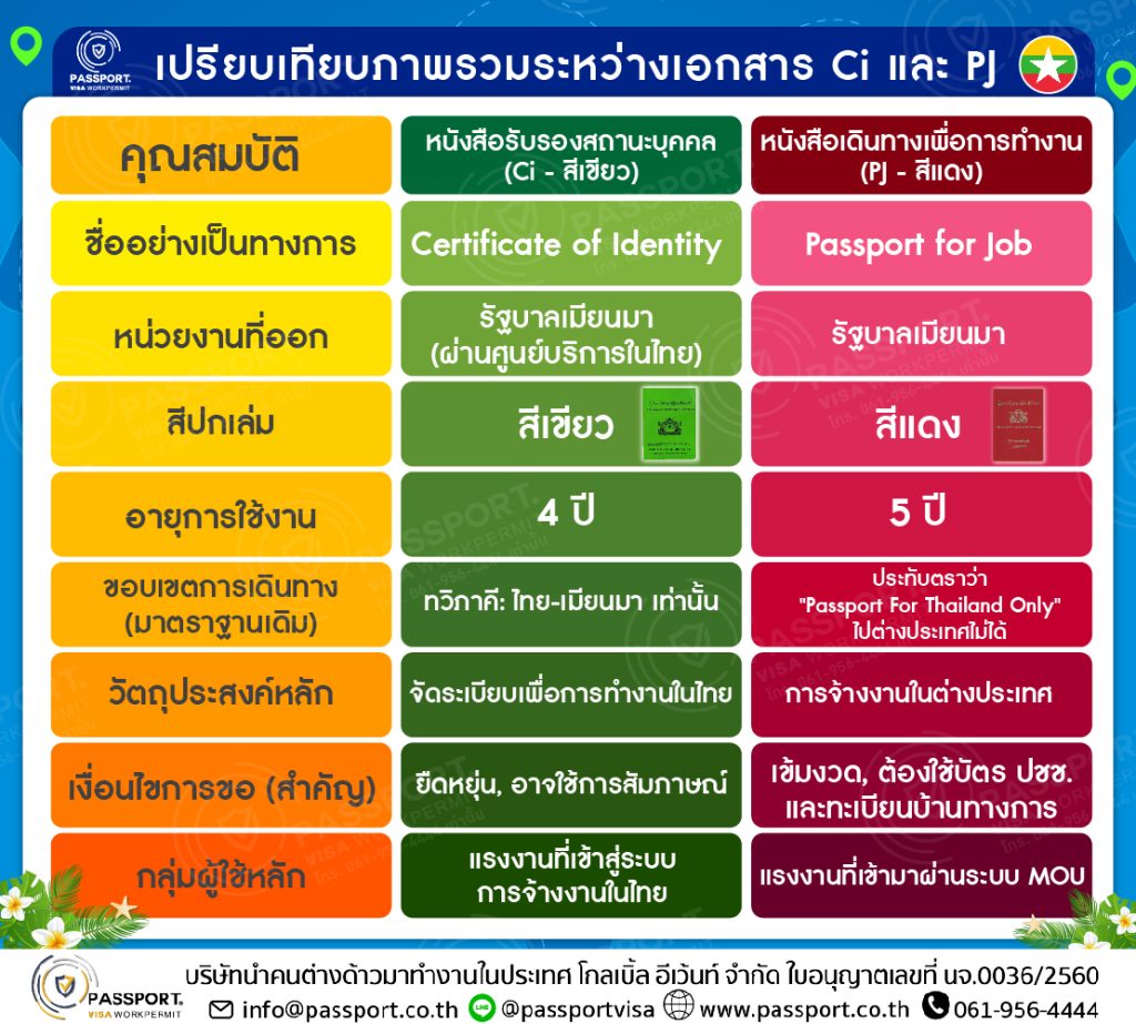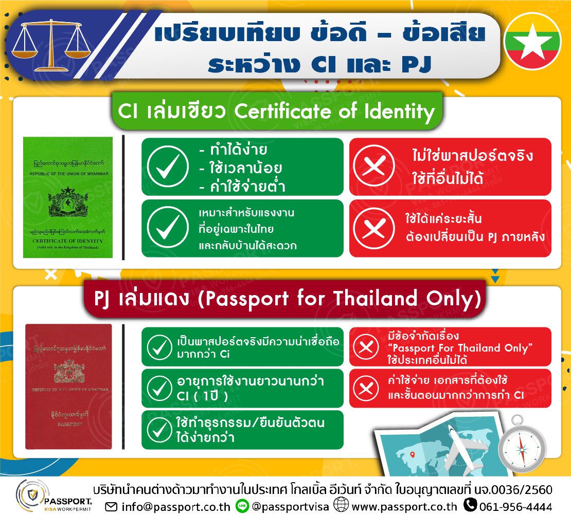 หากต้องการทำงานในไทยต่อเนื่องเพียงอย่างเดียว แนะนำให้เลือก CI เล่มใหม่ (เล่มสีเขียว) เพราะราคาประหยัดกว่า (~5,800 บาท เทียบกับ ~8,000+ บาทสำหรับ PJ) และขั้นตอนยืดหยุ่นกว่า ไม่ต้องมีบัตรประชาชนเมียนมาตัวจริง
