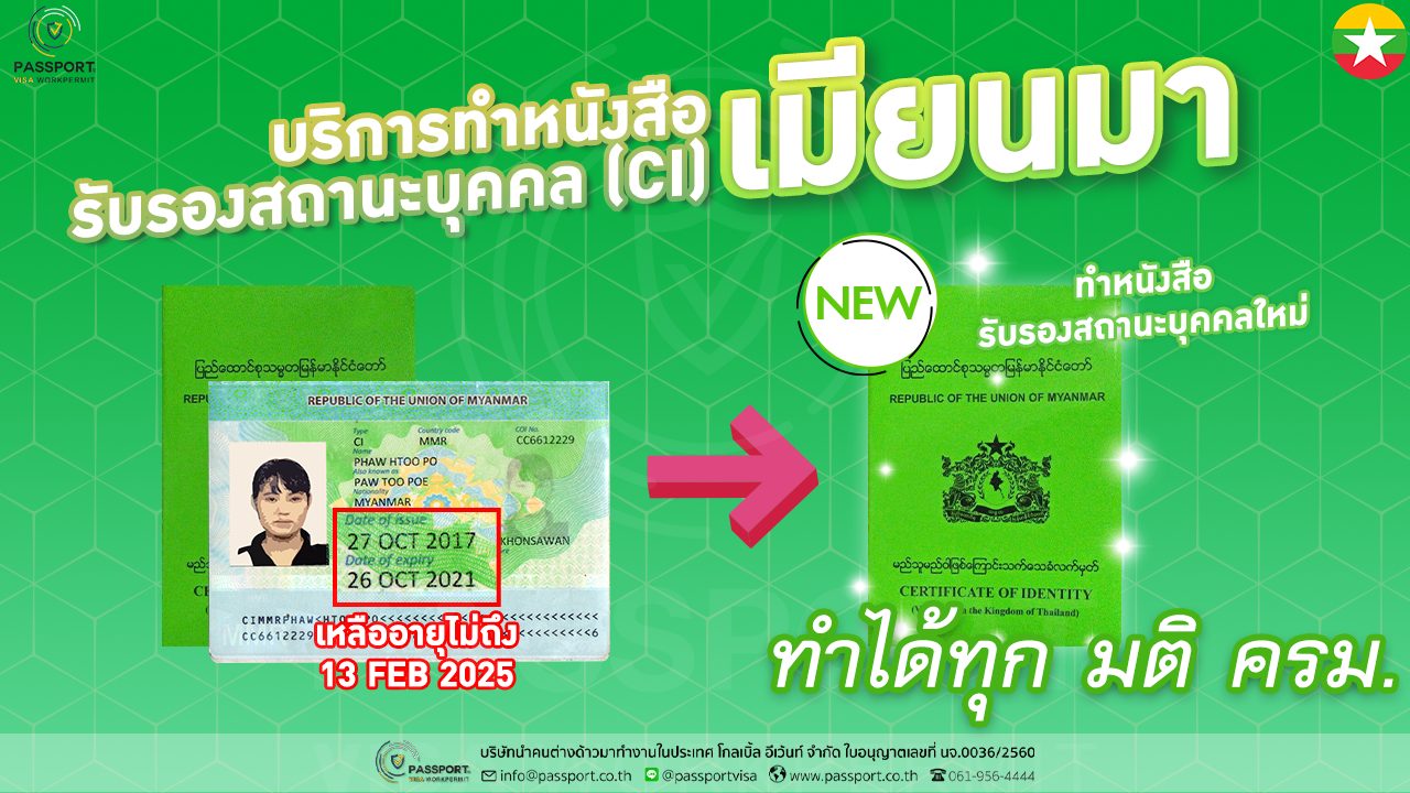แรงงานเมียนมา พม่า ที่มีหนังสือรับรองสถานะบุคคล (CI) หมดอายุก่อน 13 Feb 2025