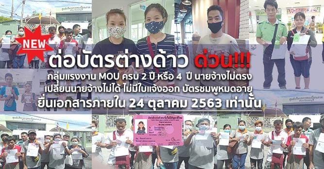 กลุ่มแรงงาน MOU ครบ 2 หรือ 4 ปี นายจ้างไม่ตรง เปลี่ยนนายจ้างไม่ได้ ไม่มีใบแจ้งออก บัตรชมพูที่ต่ออายุรอบแรกไม่ทัน