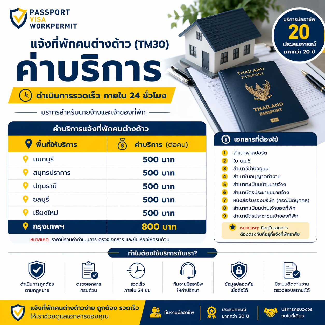 เราช่วยตรวจเอกสาร ประสานงาน และดำเนินการแจ้งที่พักคนต่างด้าวให้ถูกต้องตามขั้นตอน